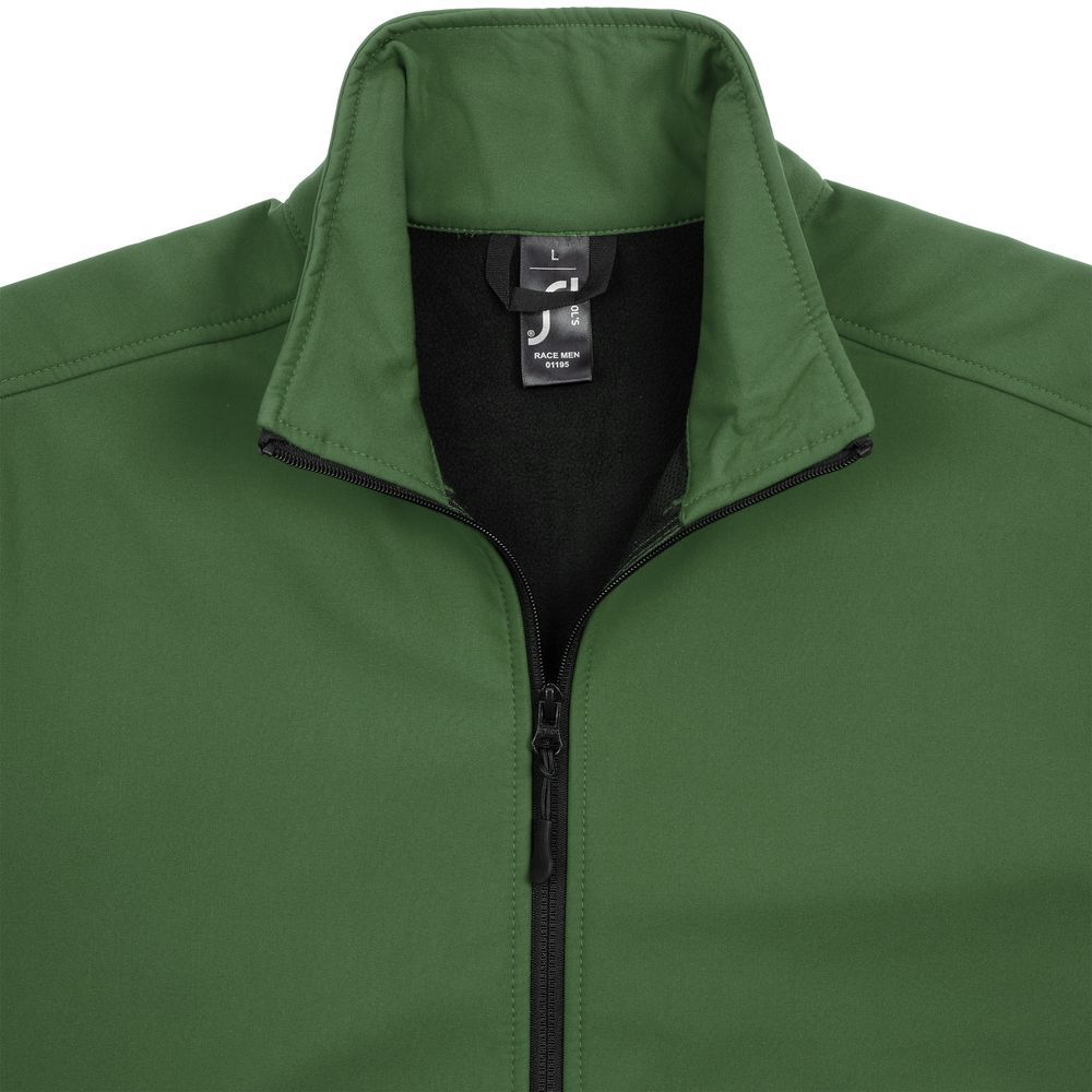 - рассчитать стоимость нанесения логотипа на Куртка софтшелл мужская RACE MEN, темно-зеленая (зависит от количества, размера нанесения, выбранного способа)